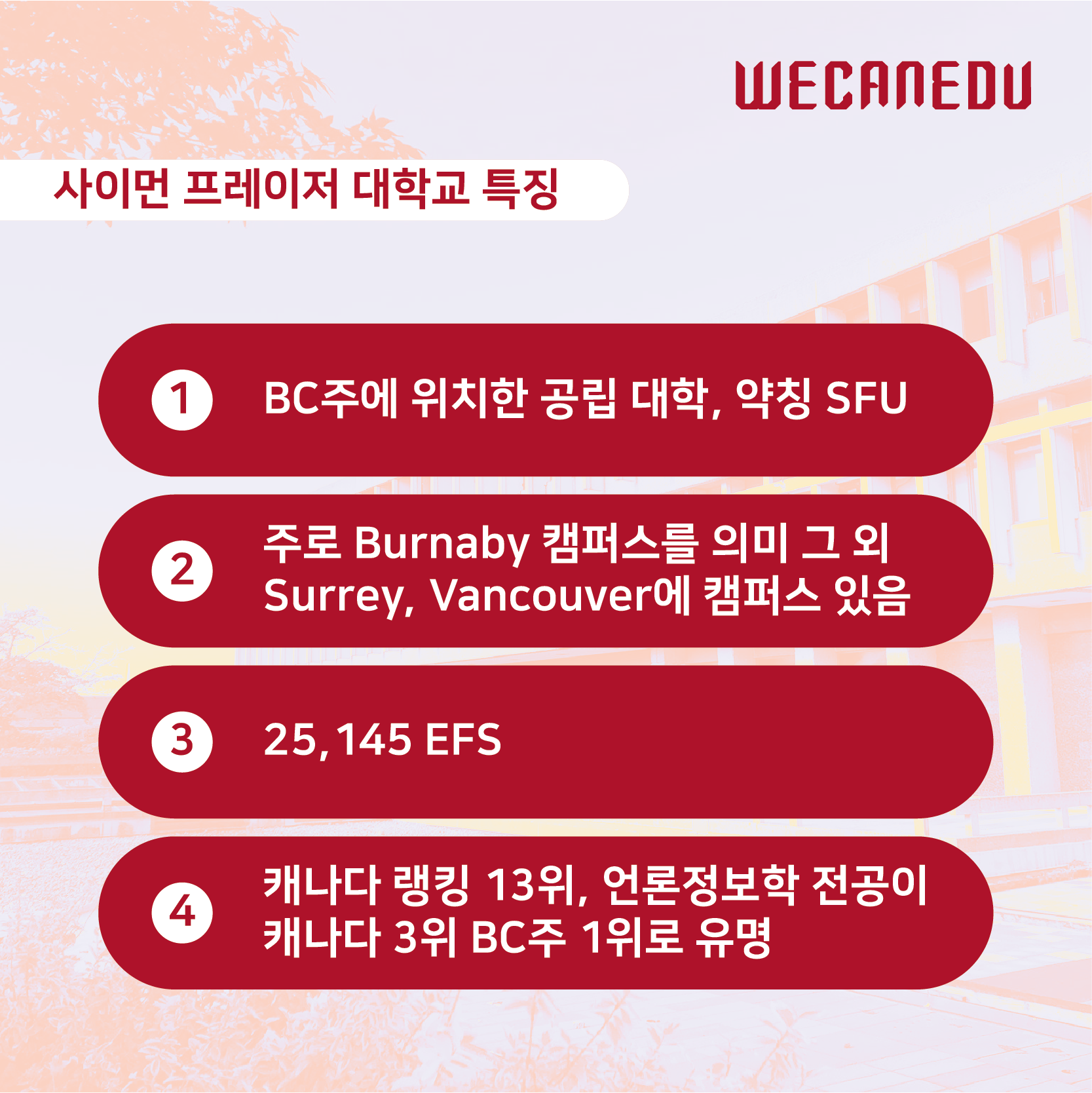 캐나다 서부 3강 대학중 하나인!