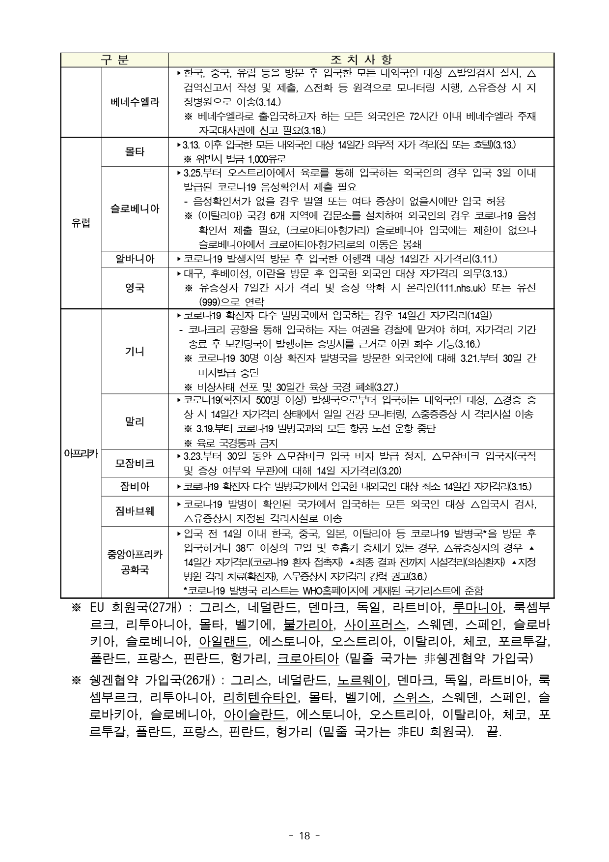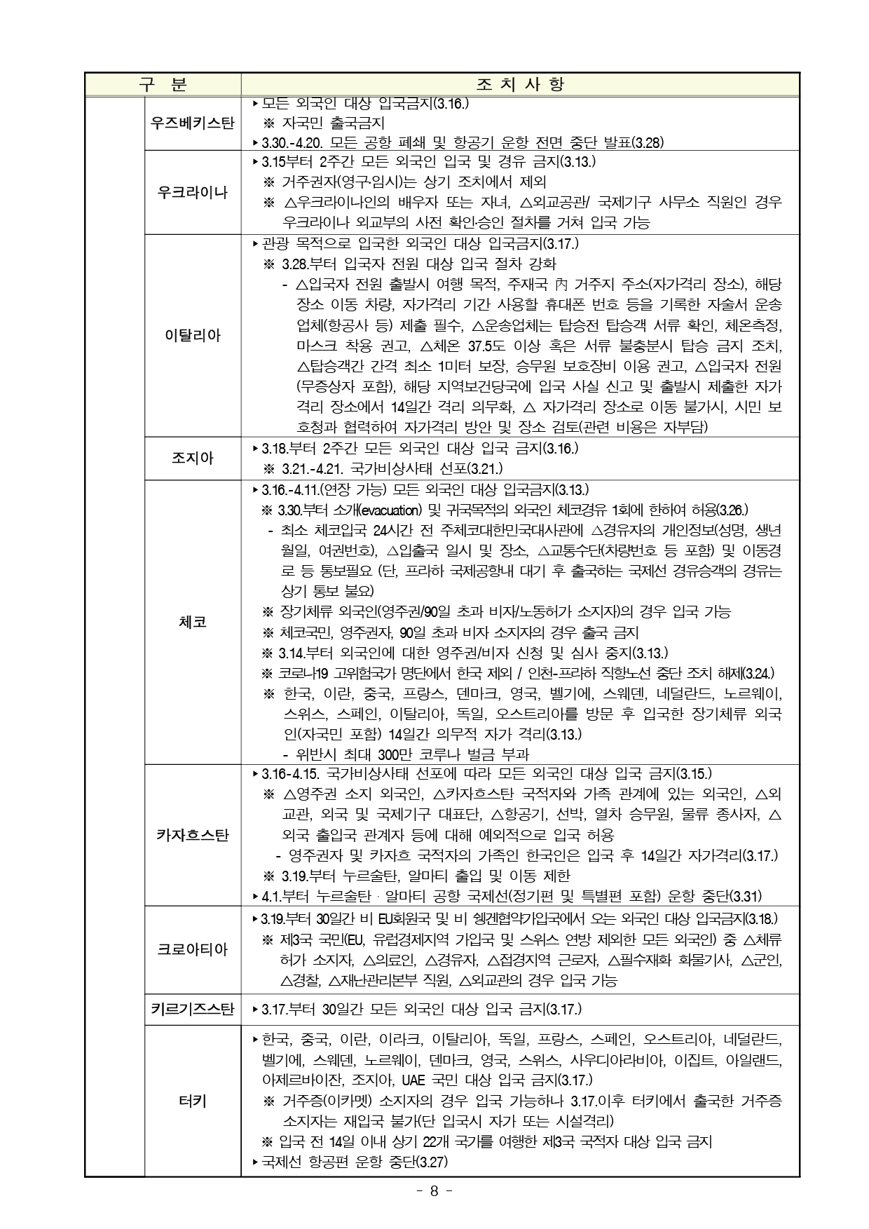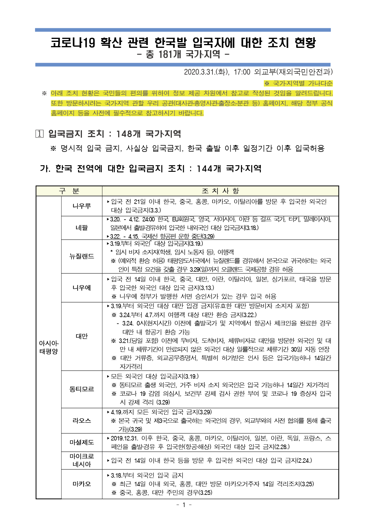 한국발 입국자 조치 현황을 알리려고 합니다.