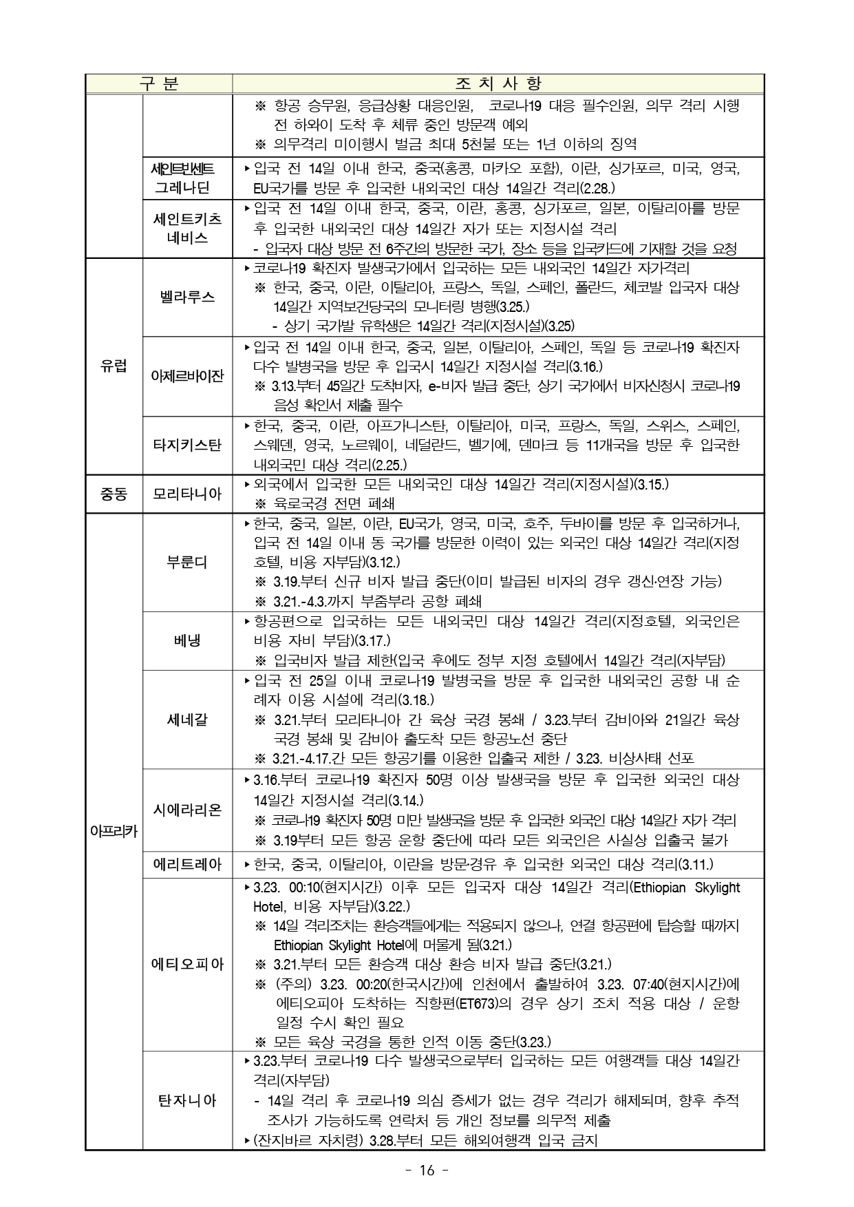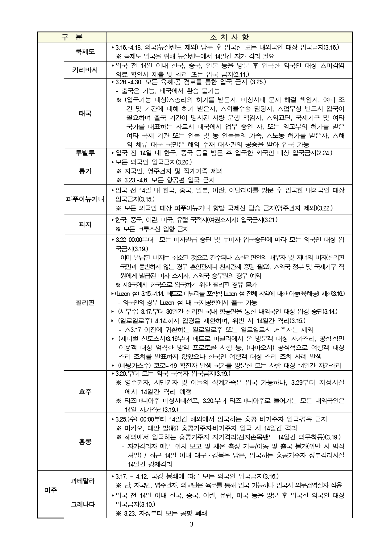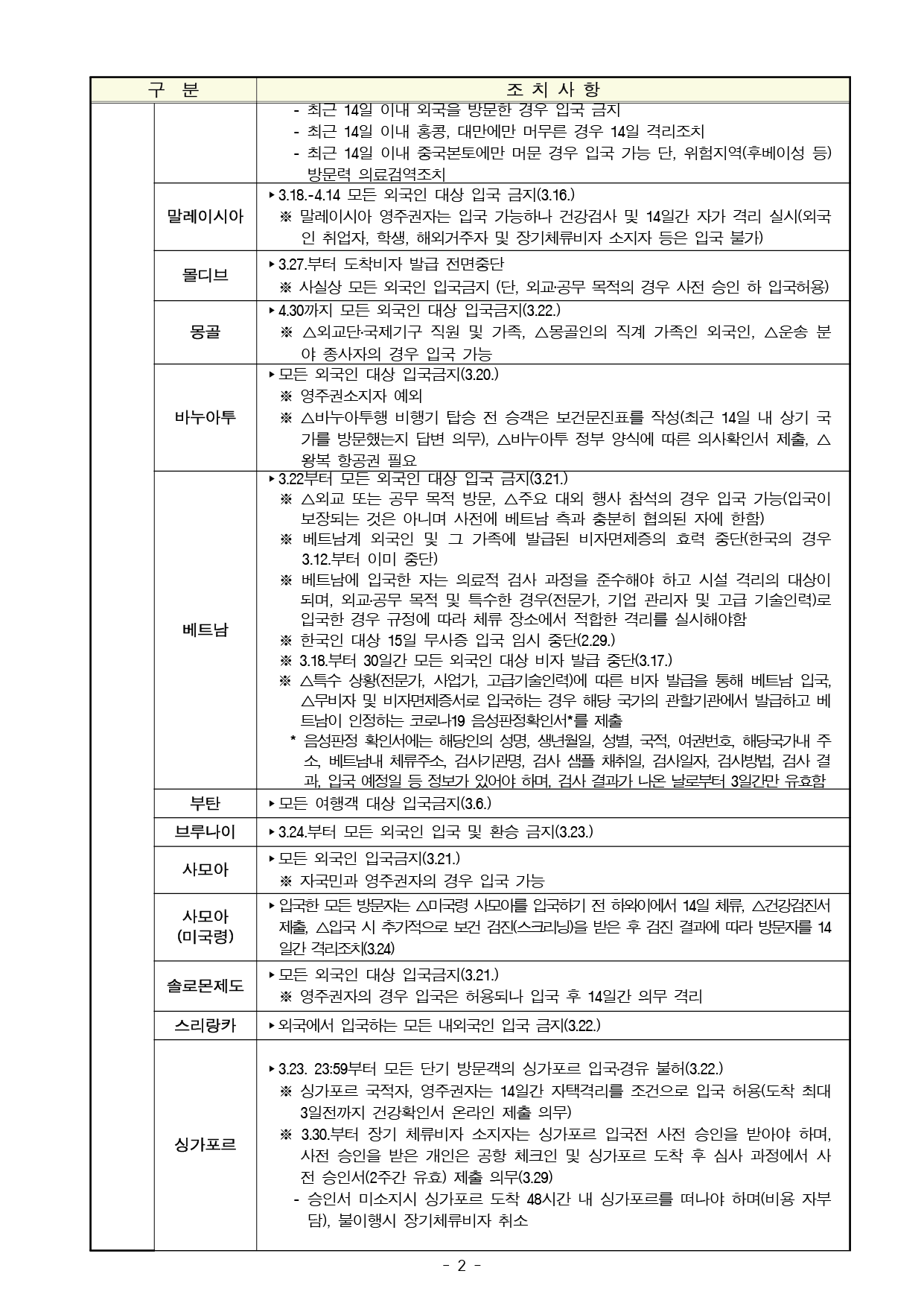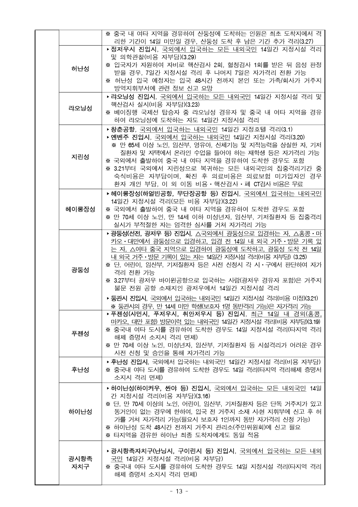 한국발 입국자 조치 현황을 알리려고 합니다.