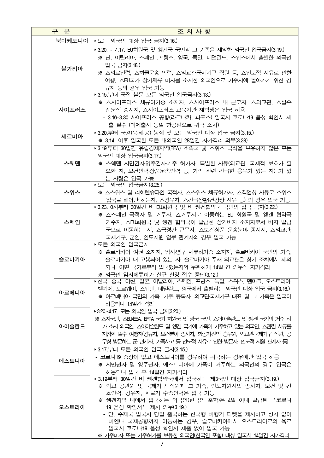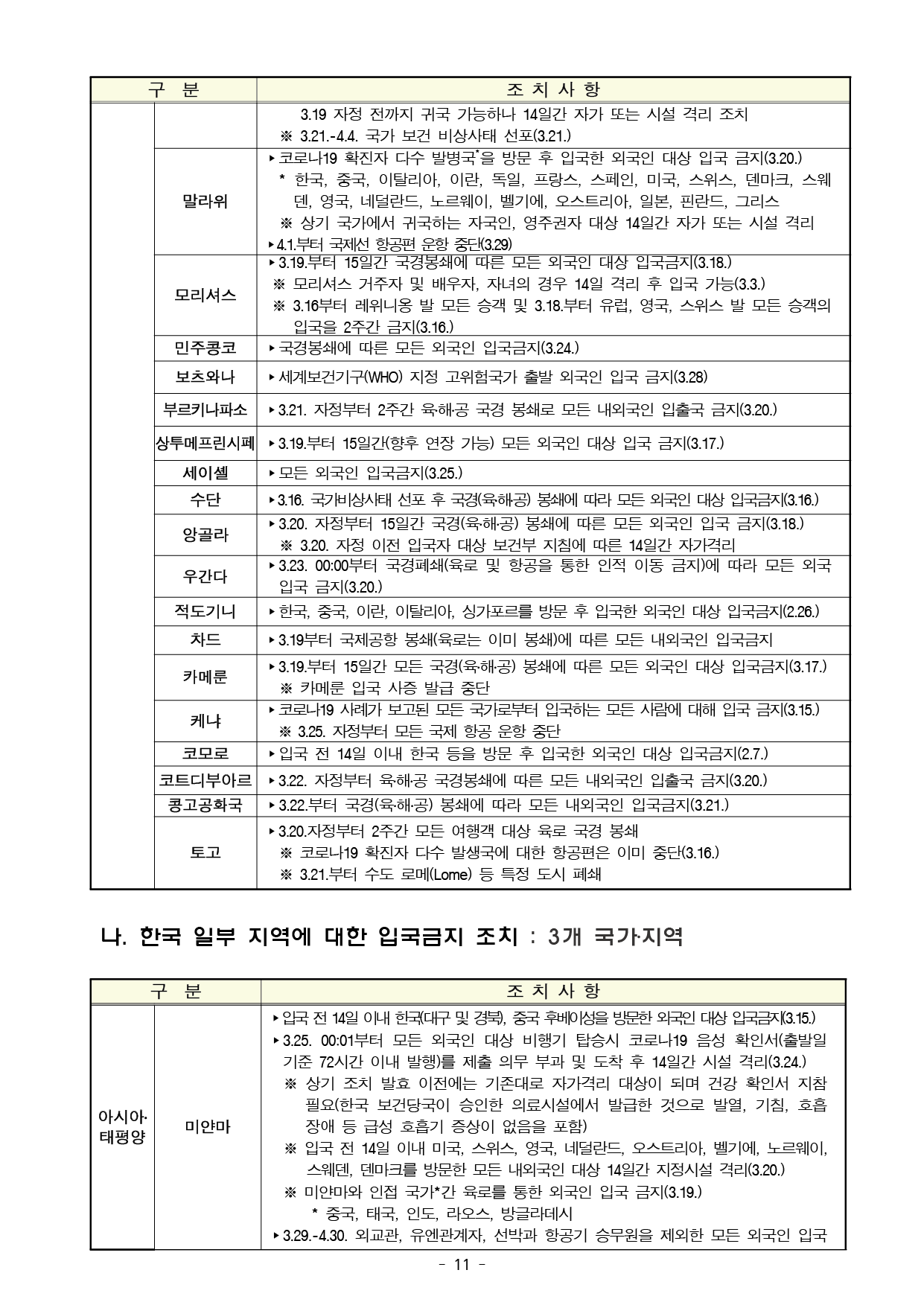 한국발 입국자 조치 현황을 알리려고 합니다.