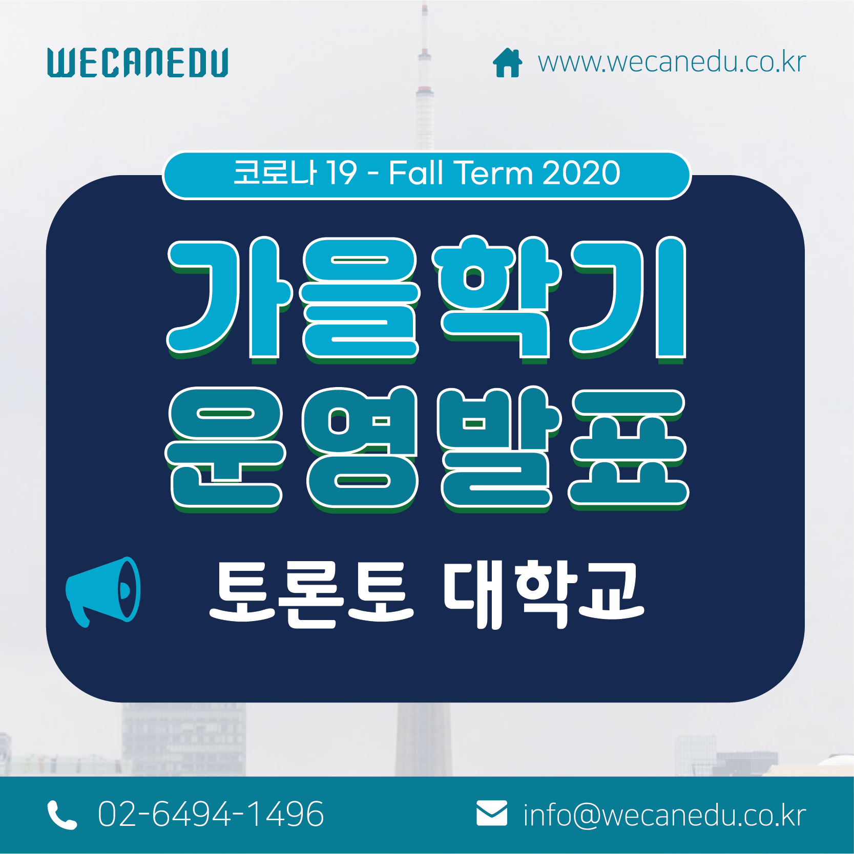 [캐나다 대학교] 2020 캐나다 대학교 가을학기 공지 - 토론토 대학교 (University of Toronto)