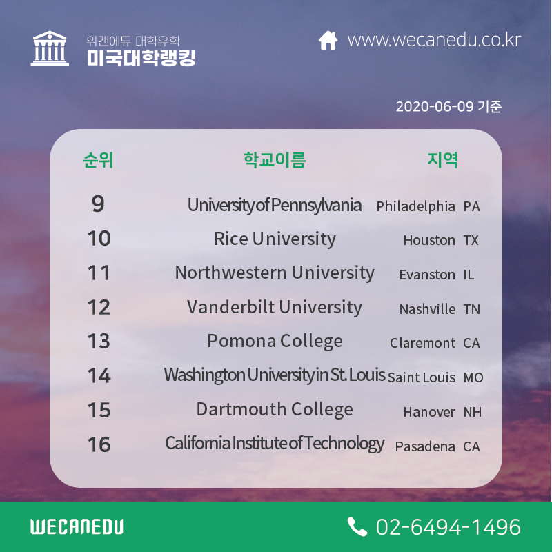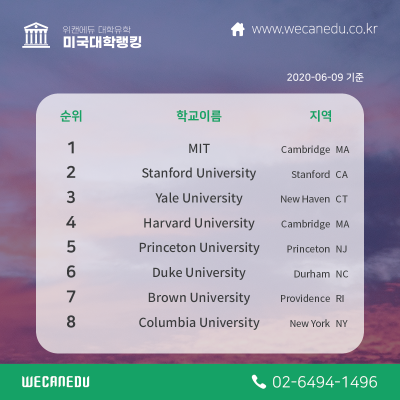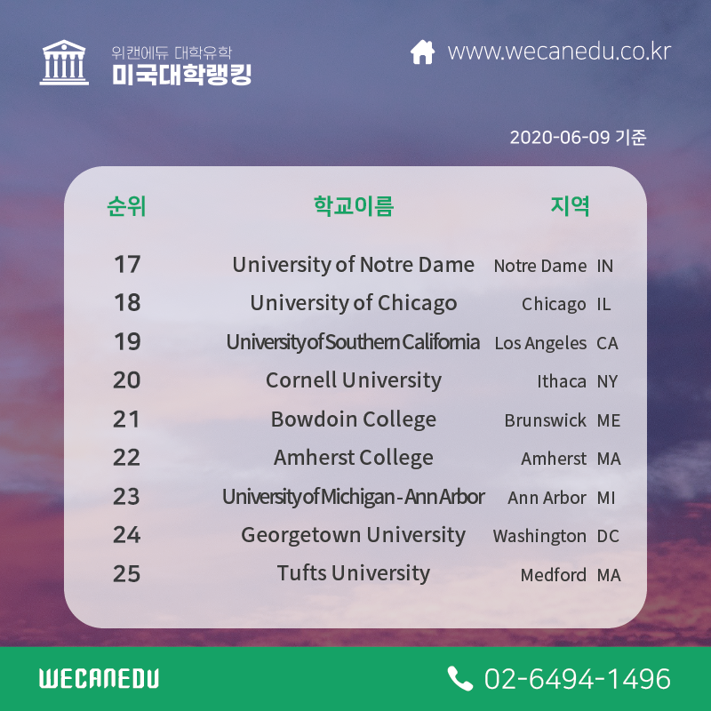 | [대학유학] 미국 대학교 순위 변화 (2017-2020년) (0) | 2020.07.01 |