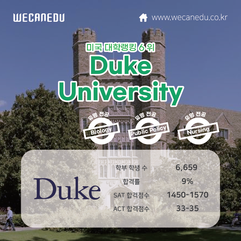 공학을 내세운 Duke University는 6위까지 올라왔습니다.