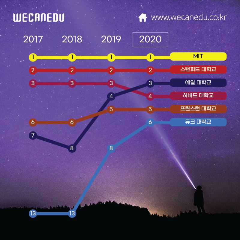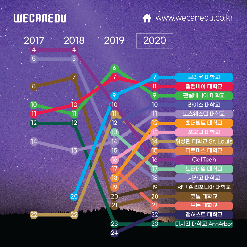 바로, 미국의 최근 4년 간 대학들의 순위 변화!
