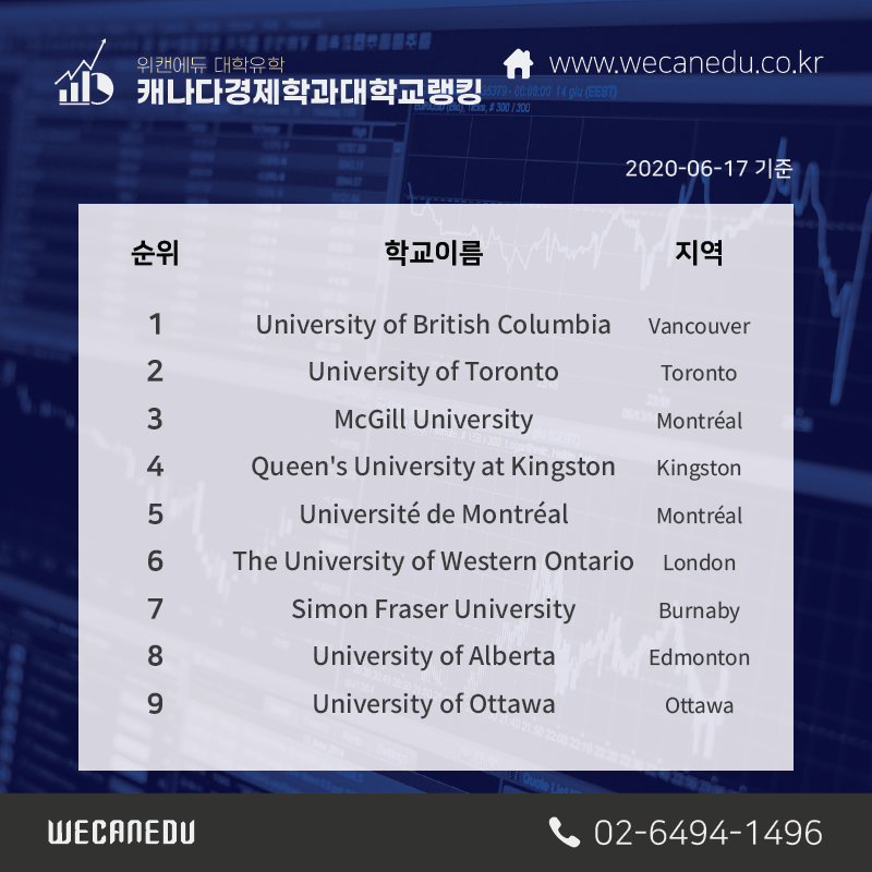 그래서 캐나다 대학교들의 경제학과 순위를 살펴보겠습니다.