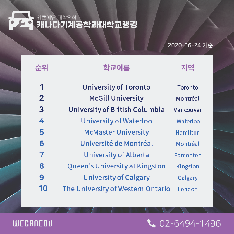 오늘 제가 준비한 캐나다 기계공학 대학순위는
