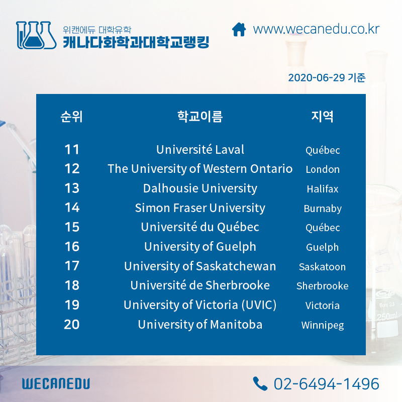 오늘 살펴볼 캐나다 학과별 순위는 바로