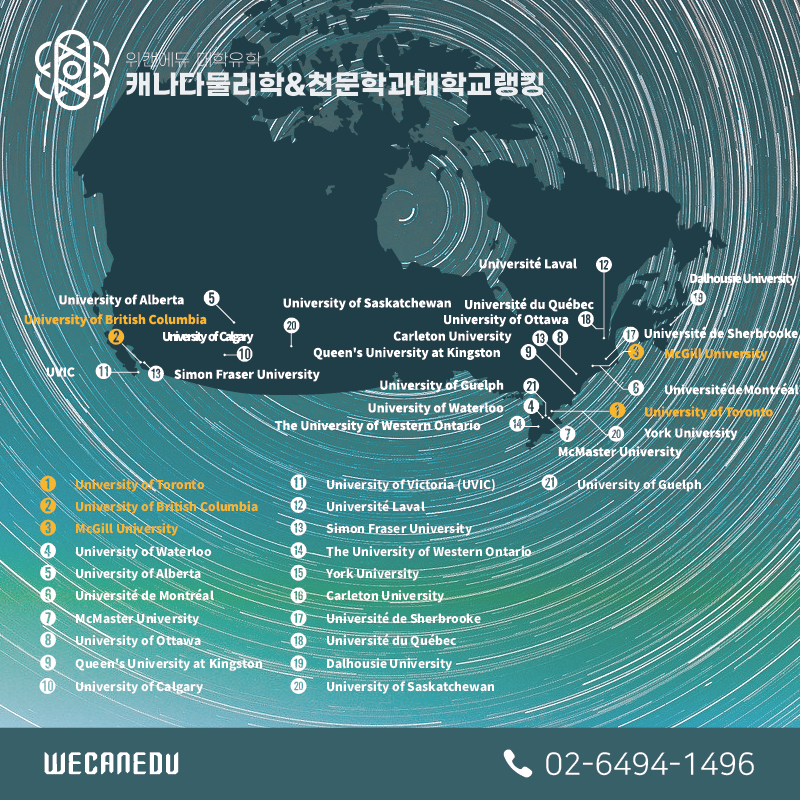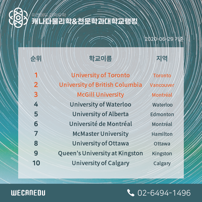 캐나다의 물리 & 천문학 전공 순위입니다.