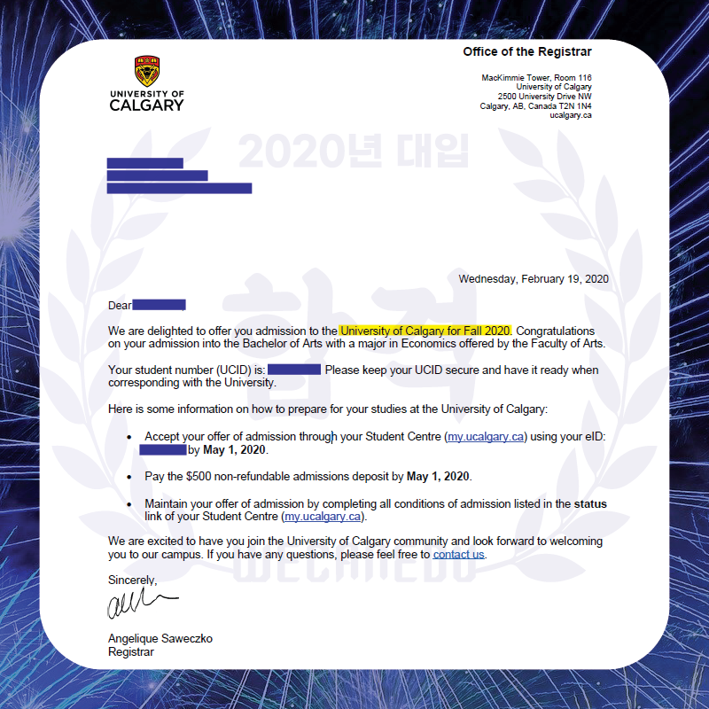학생이 열심히 한다면 3학년 때 Haskayne School로