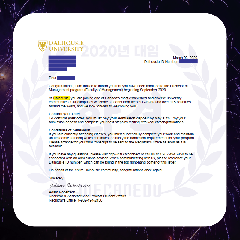 댈하우지 입학처의 문이 열렸습니다.