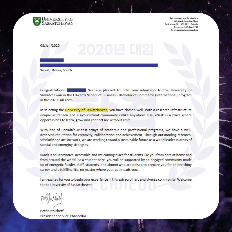 USask는 캐나다 내에서도 입학하기 힘들고,