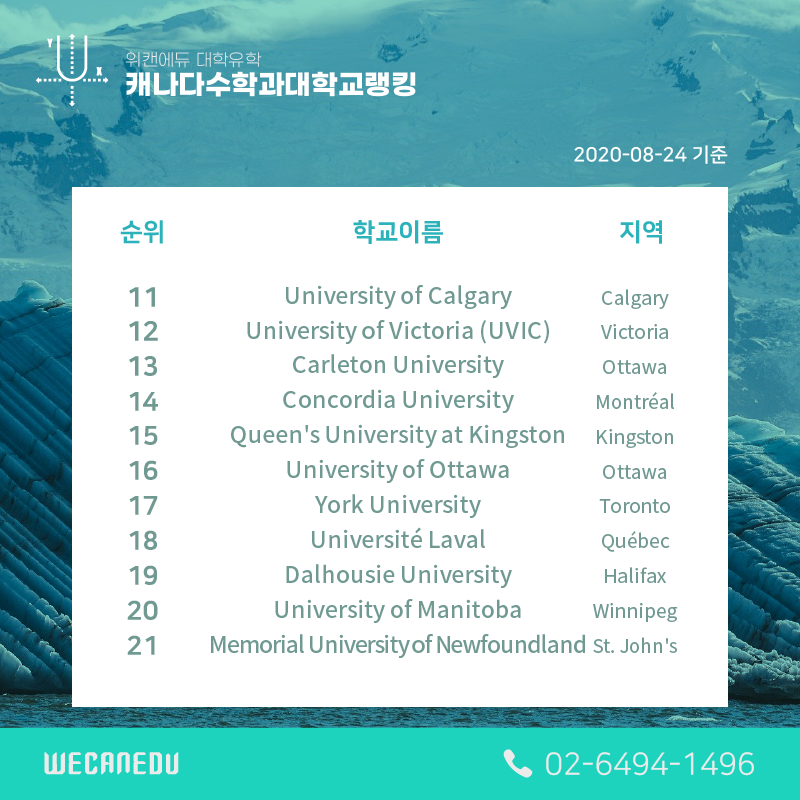 | [대학유학] 캐나다 대학교 순위 변화 (2017-2020년) (0) | 2020.09.04 |