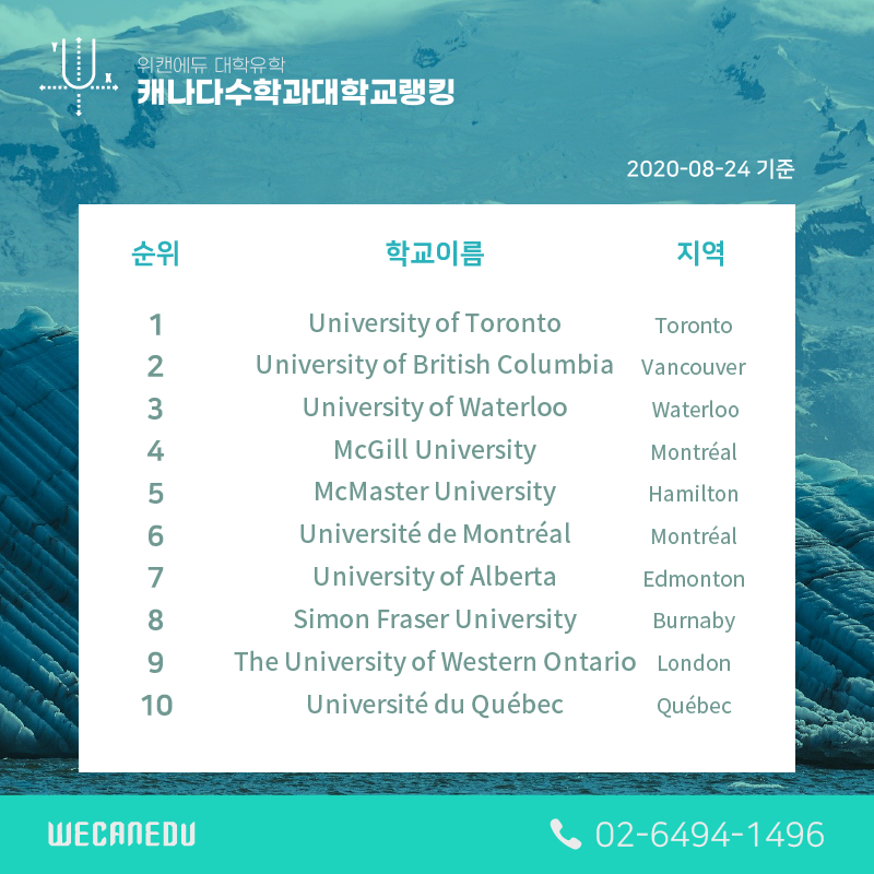 바로 캐나다 대학의 수학과 순위를 알아보겠습니다.