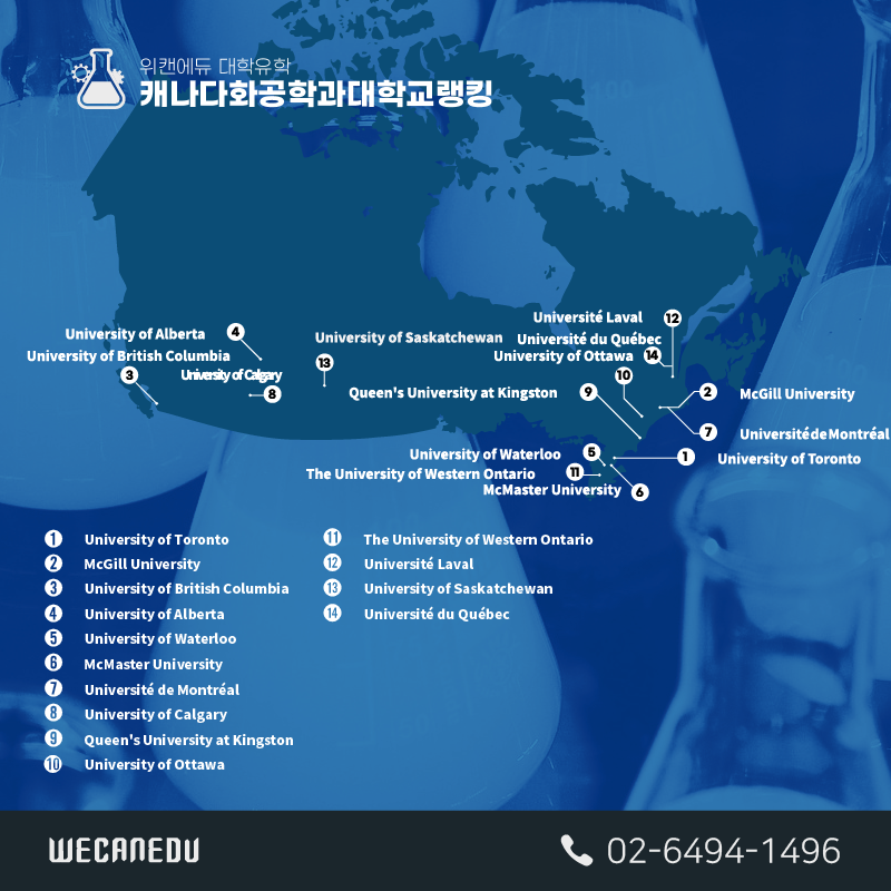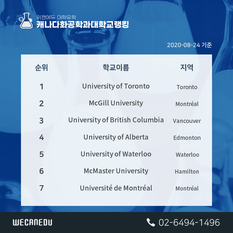 그럼 지금부터 캐나다 화학공학 전공 순위를 보겠습니다.