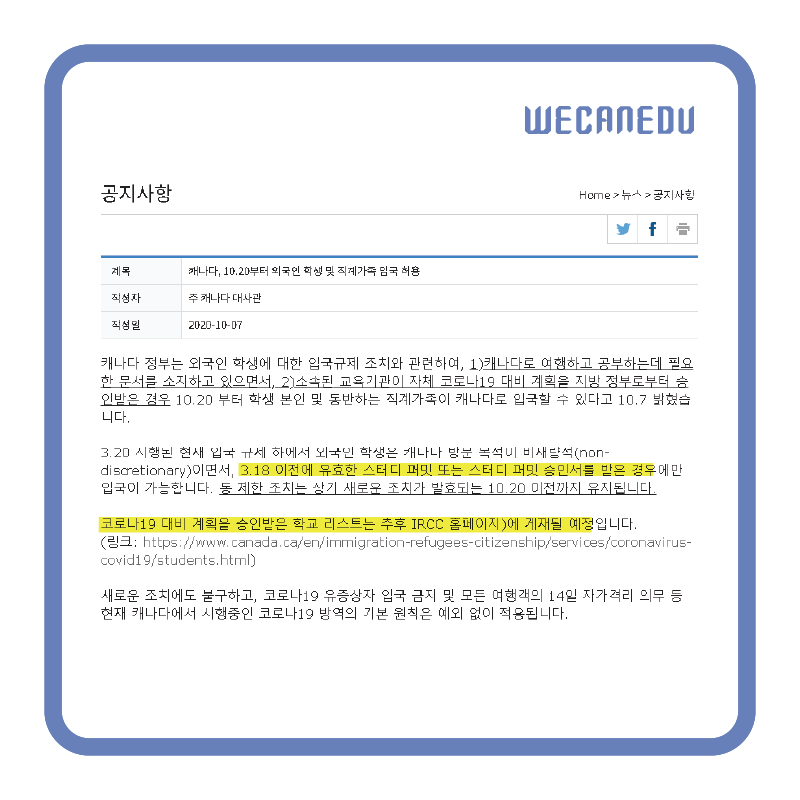 | [위캔에듀] 캐나다 유학생 DLI 변경 공지! 학생비자 곧 열린다? (0) | 2020.10.06 |