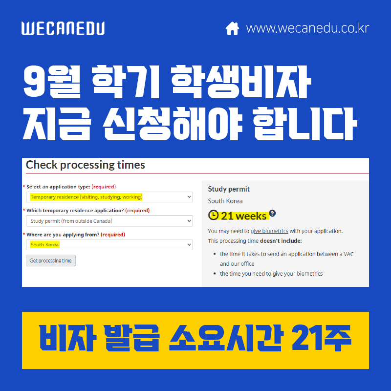 현재 한국에 거주하는 한국 학생의 캐나다 학생비자 발급은