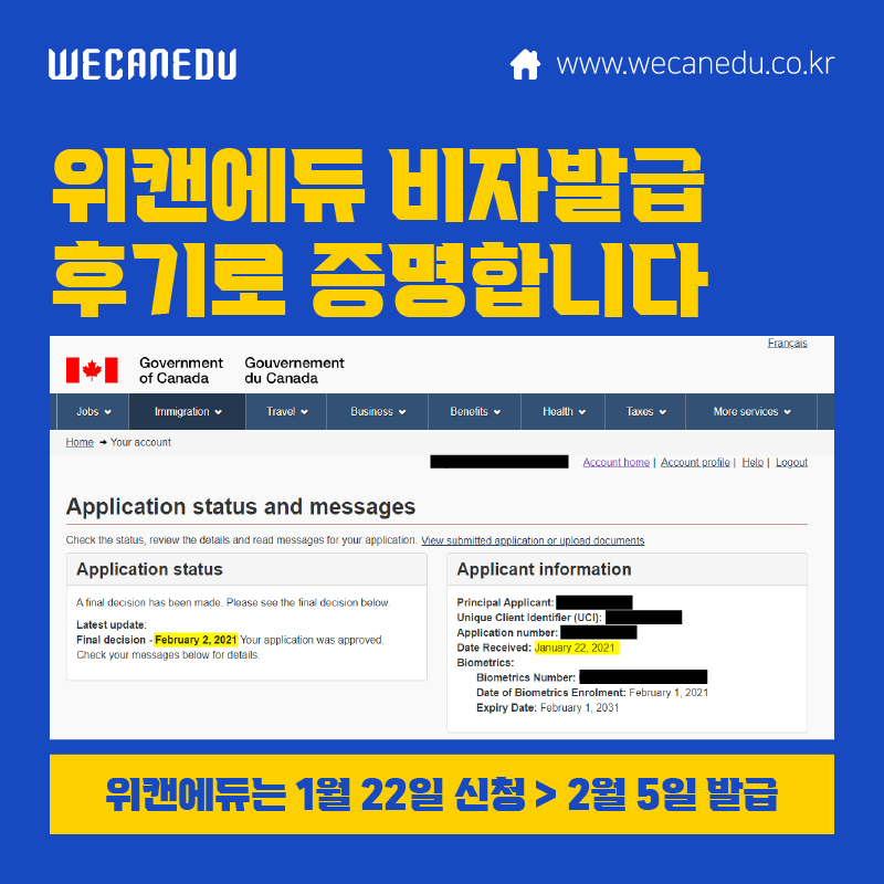 위캔에듀에서는 얼마전 초스피드로 학생비자를 발급받은