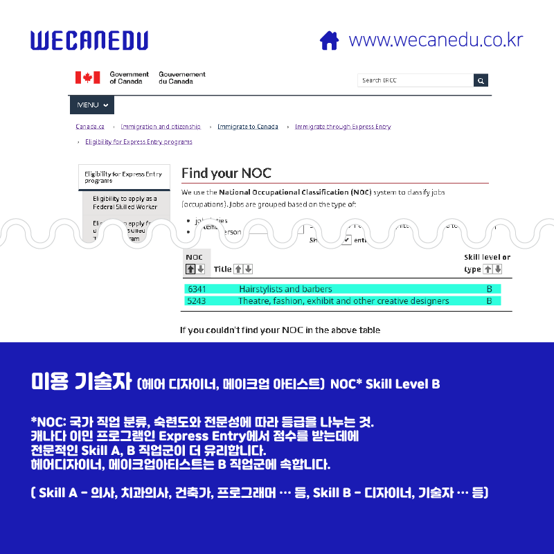 즉, 캐나다 정부가 정한 국가 기술직종이라는 의미입니다.