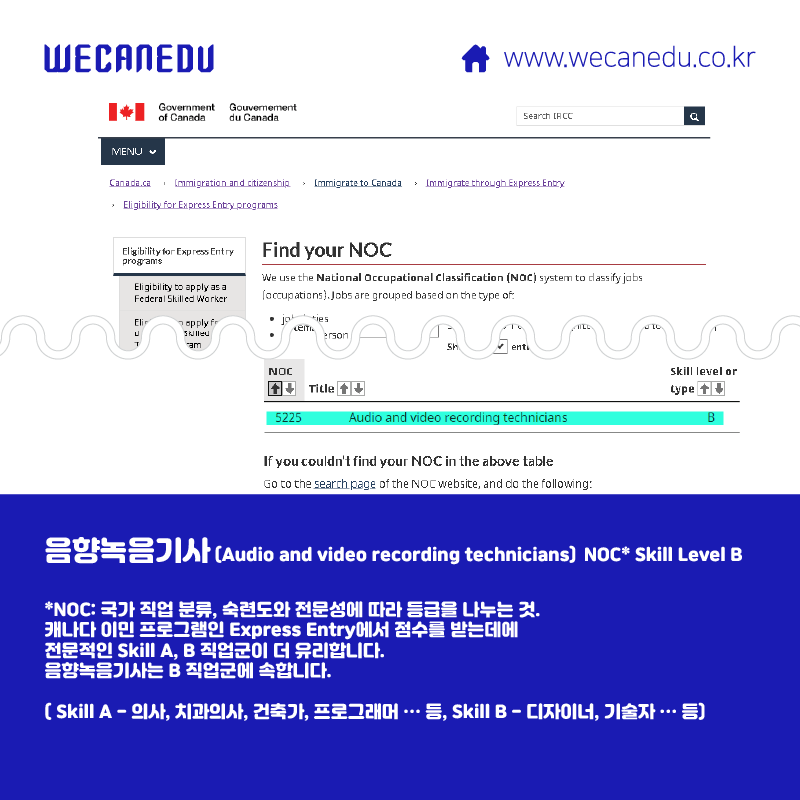 캐나다 정부가 인정한 Skill Level B군에 속하는