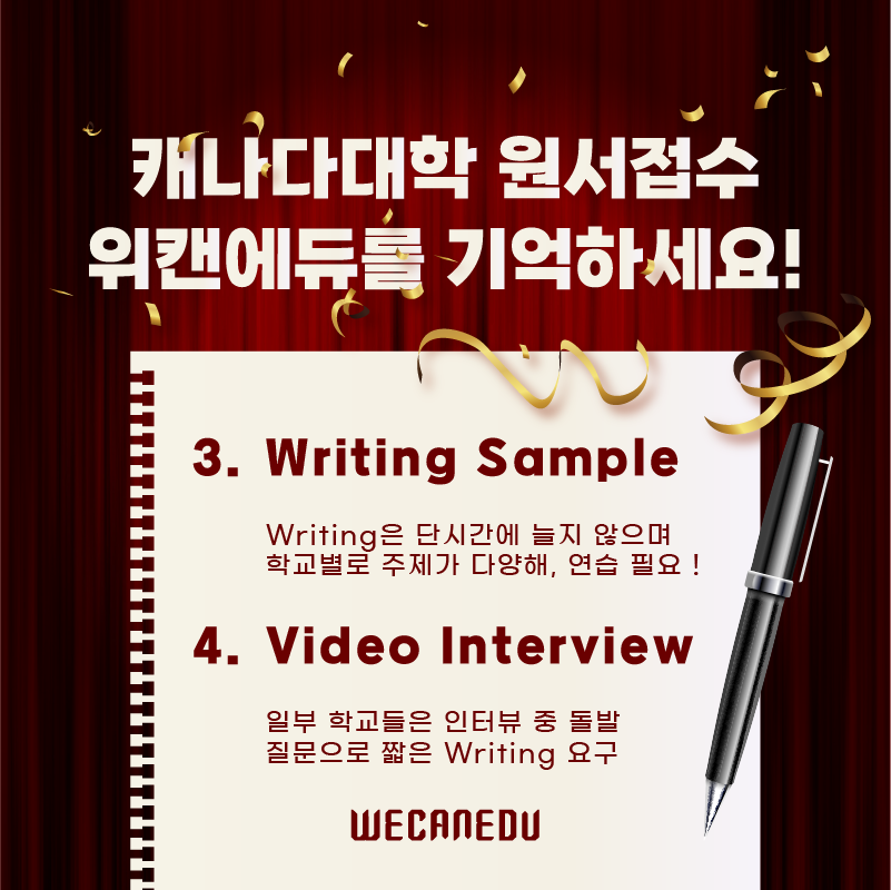 | [위캔에듀] 캐나다 대학 입학 TIP! 캐나다 대학 입학은 Writing 에서 갈린다. (0) | 2021.04.28 |