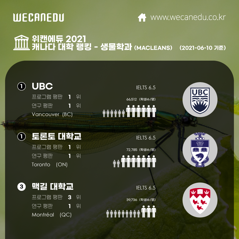 그럼 맥클린 (McLean) 발표 캐나다 대학순위 생물학 전공!