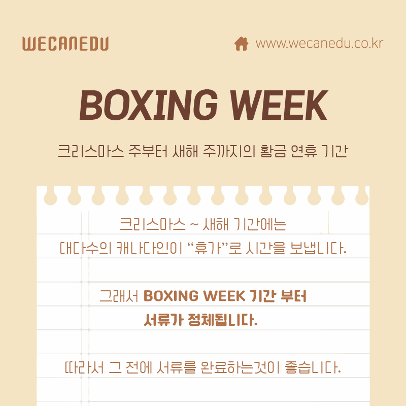 마지막으로, Boxing Week 전까지 원서를 제출하면
