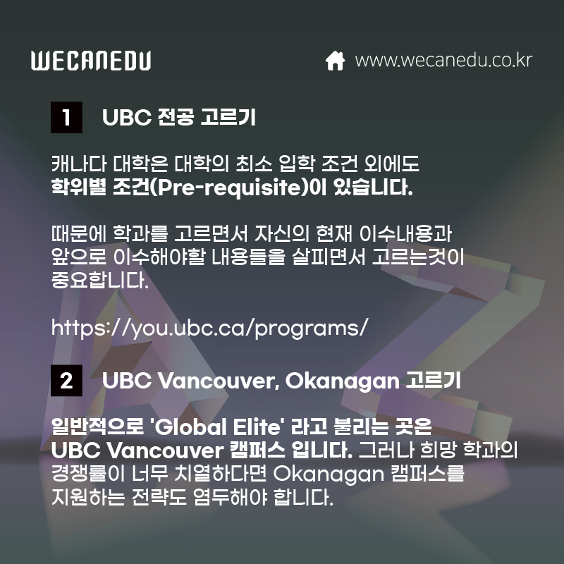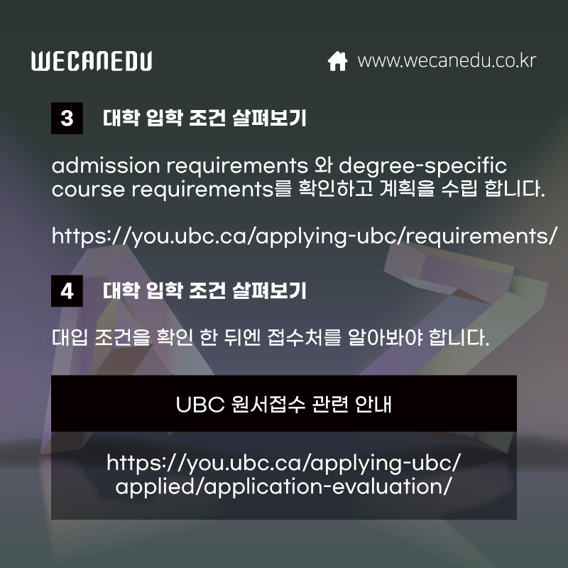 오늘은 UBC에 입학하는 절차에 대해 설명드리겠습니다.