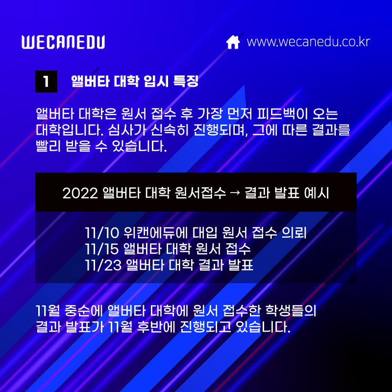 알버타 대학교는 합격자 발표를 빨리하는 편입니다.
