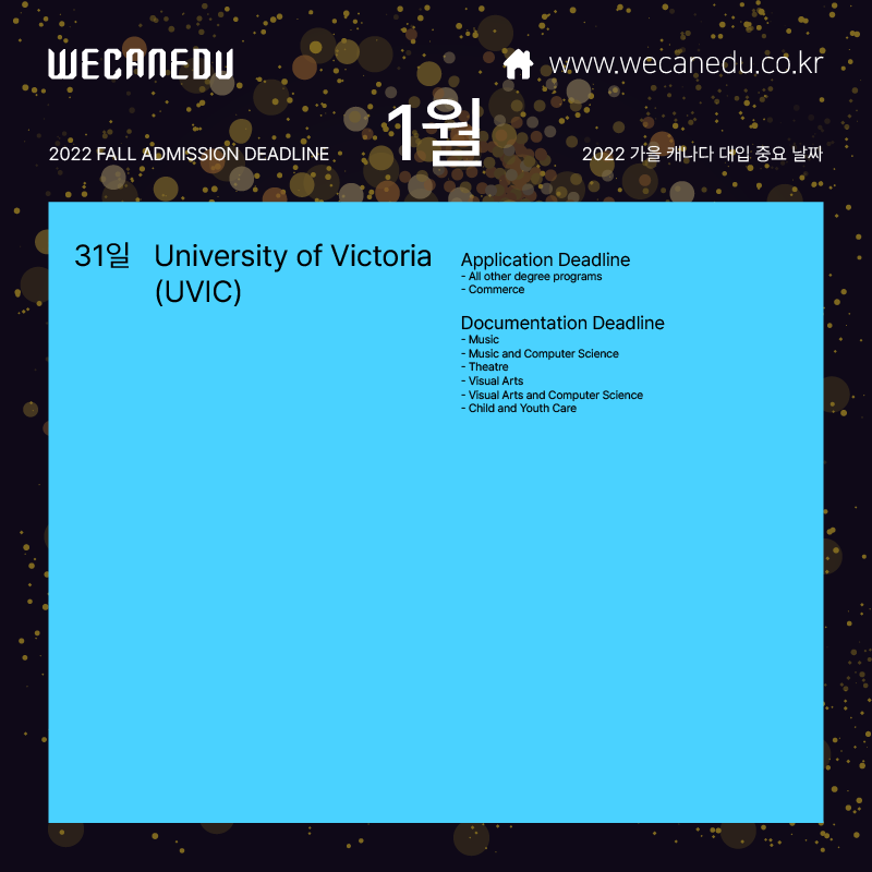 | [대학유학] 2022년 캐나다 대학 입학 지원 마감 일정 - 3월 (0) | 2022.01.18 |