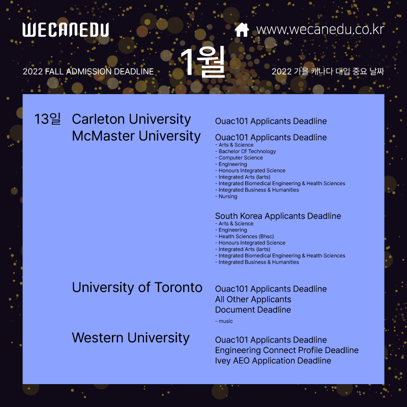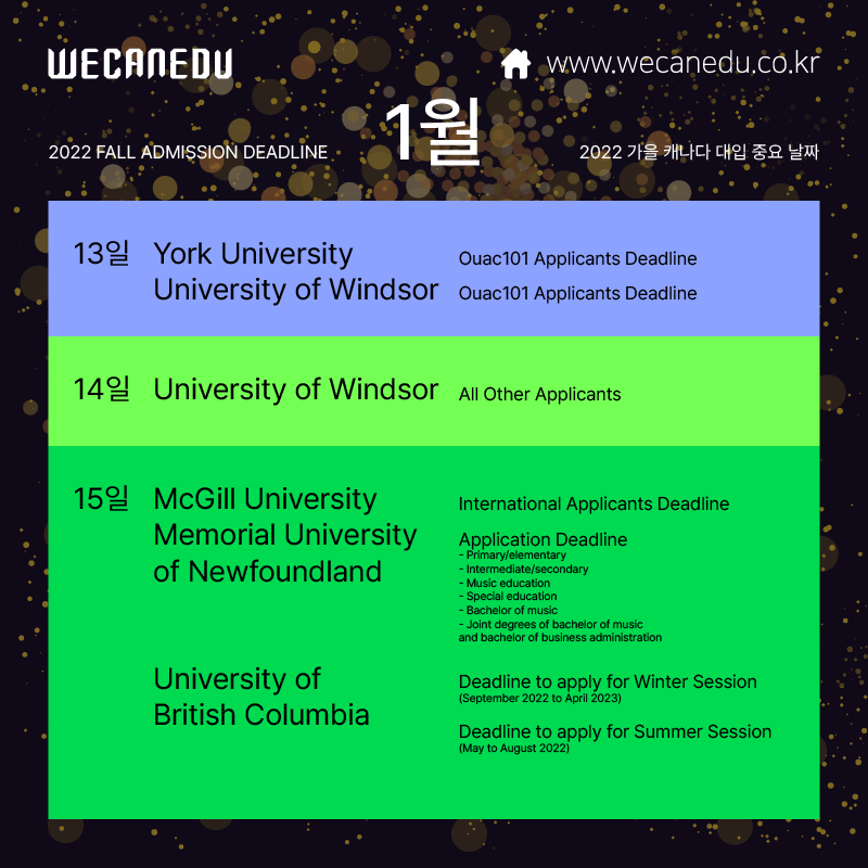2022년 캐나다 대학 입시 기간이 어느덧 절반을 지나가고 있습니다.