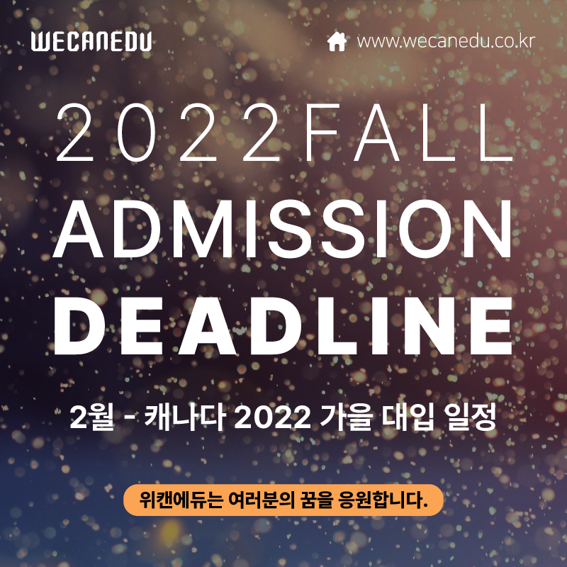 | [대학유학] 2022년 캐나다 대학 입학 지원 마감 일정 - 3월 (0) | 2022.01.18 |