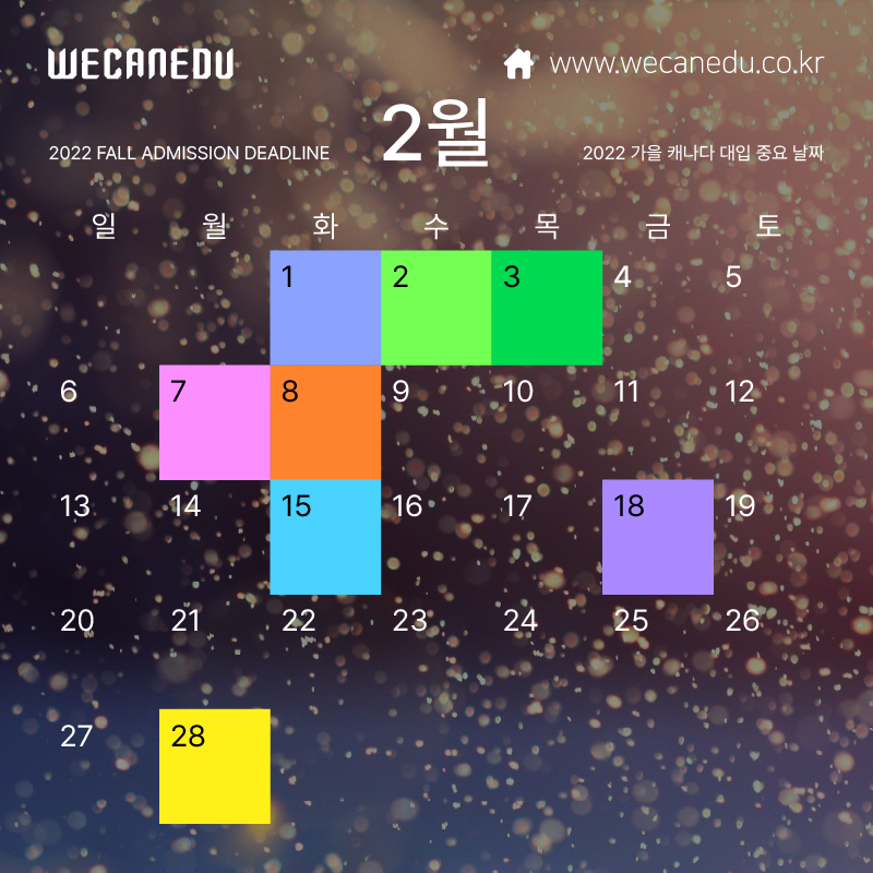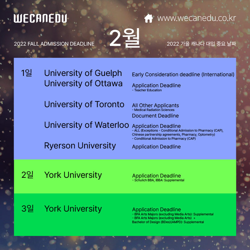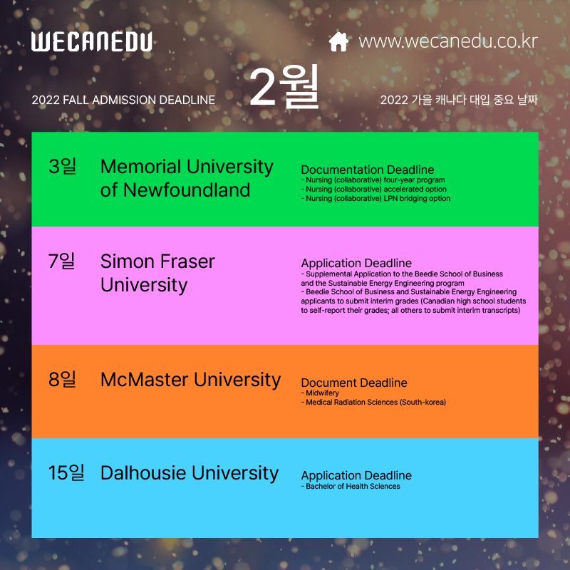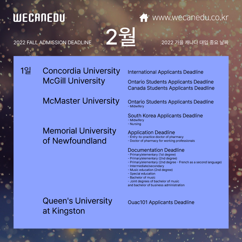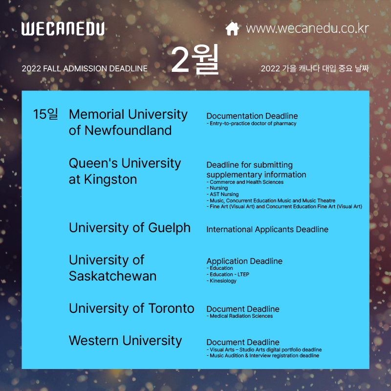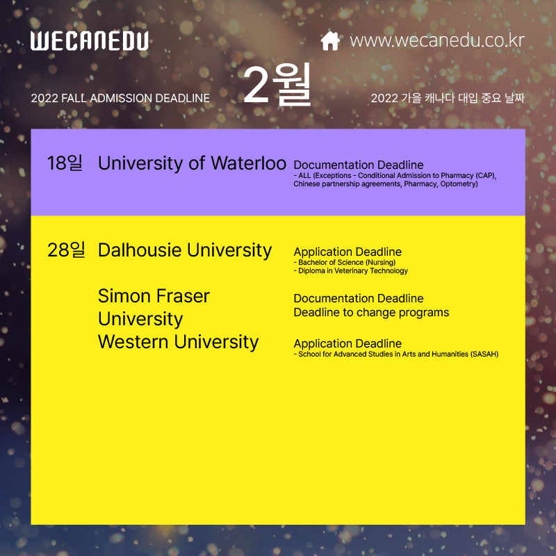 지금부터 2월에 접수 마감되는 캐나다 대학교 목록을 보겠습니다.