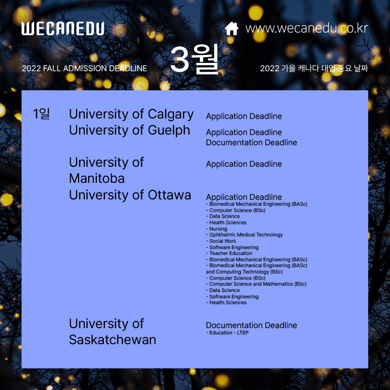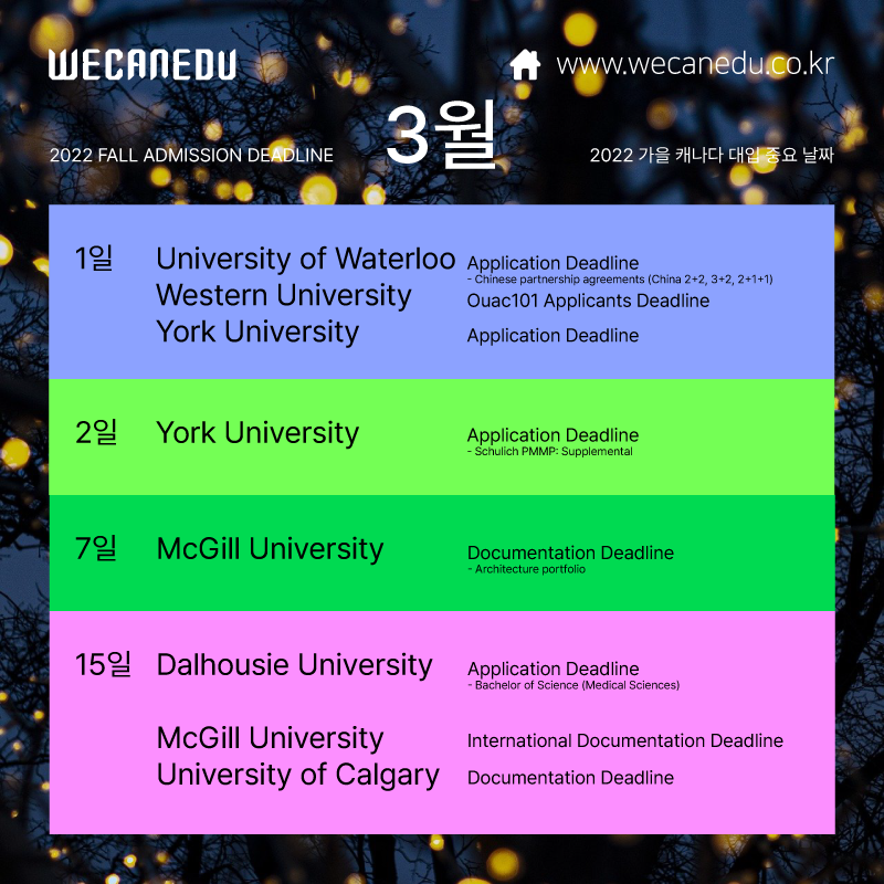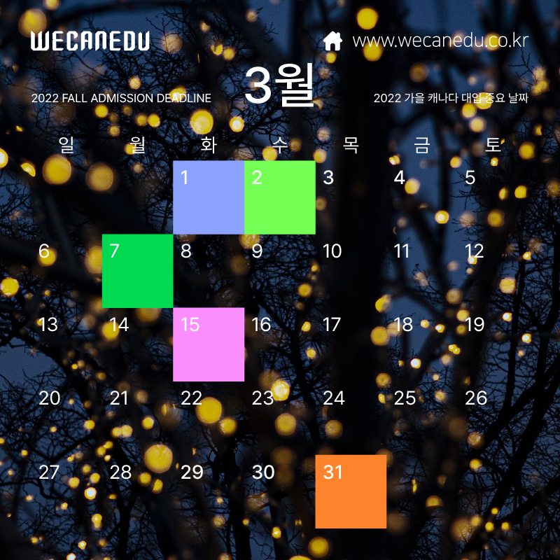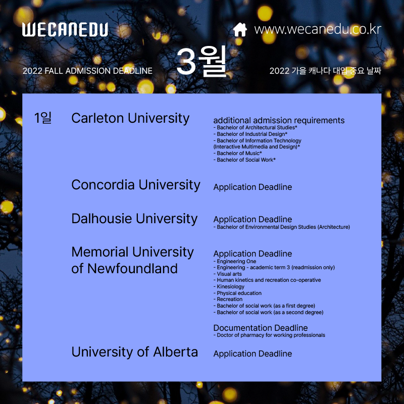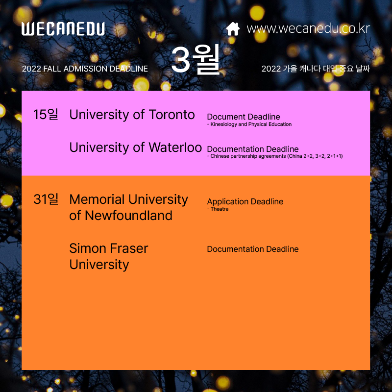 위캔에듀의 3월 캐나다 대학 입시일정,