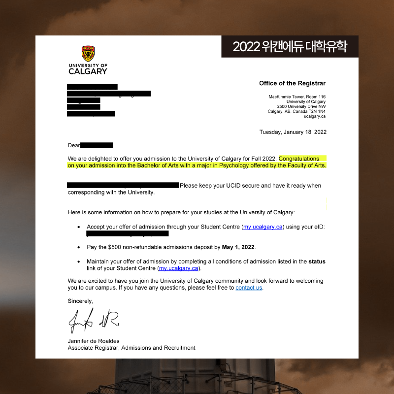 캘거리 대학교 학부생으로서의 준비는 끝납니다.
