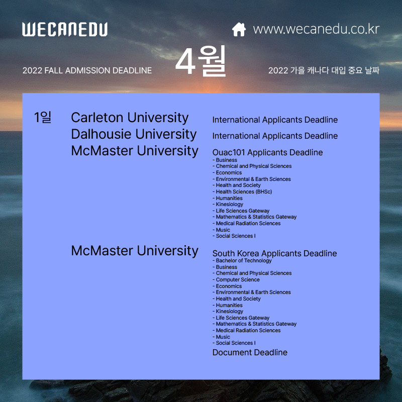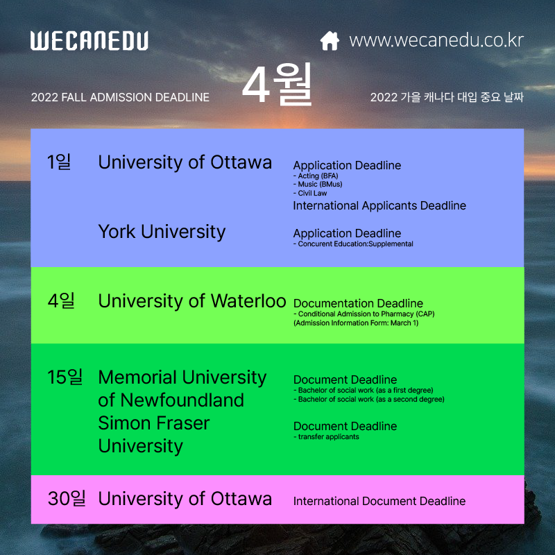 이제 곧 입학원서의 전체적인 마감기한이 다가옵니다.