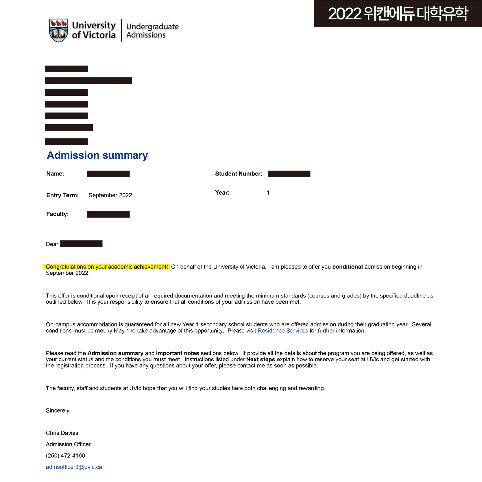 이 학생의 경우 밴쿠버가 아닌 빅토리아에서