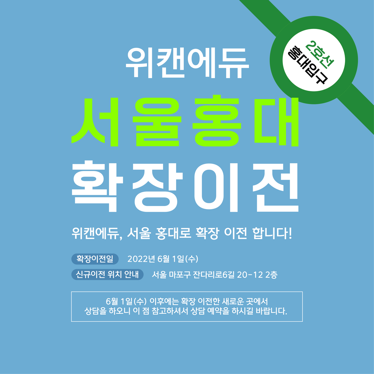 위캔에듀가 홍대사옥으로 확장했습니다.