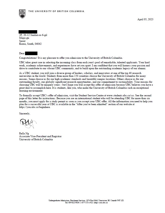 UBC에 합격하는 쾌거를 이룩했습니다.
