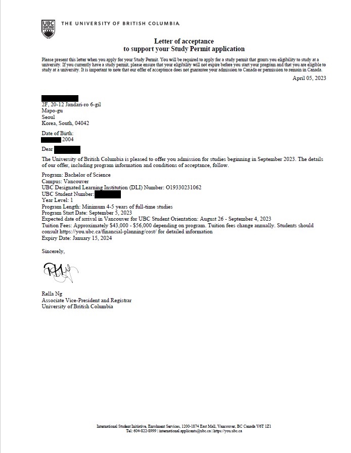 Letter of Acceptance (입학허가서) 까지!