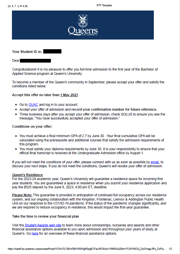 퀸스대학교에서 왔습니다!