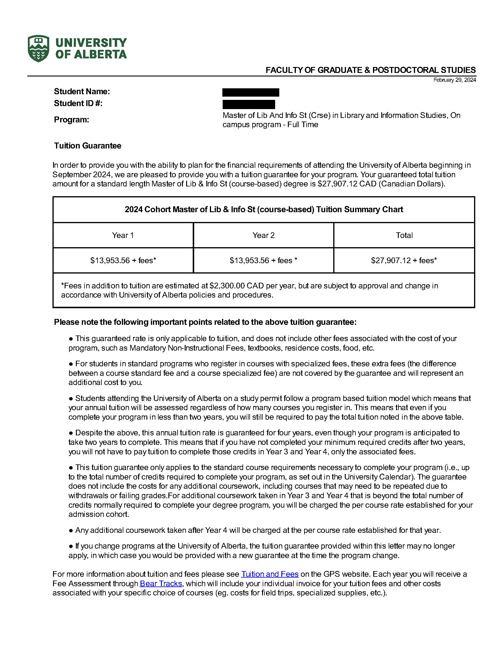 학생 이름으로 발급된 공식 Offer Letter만을