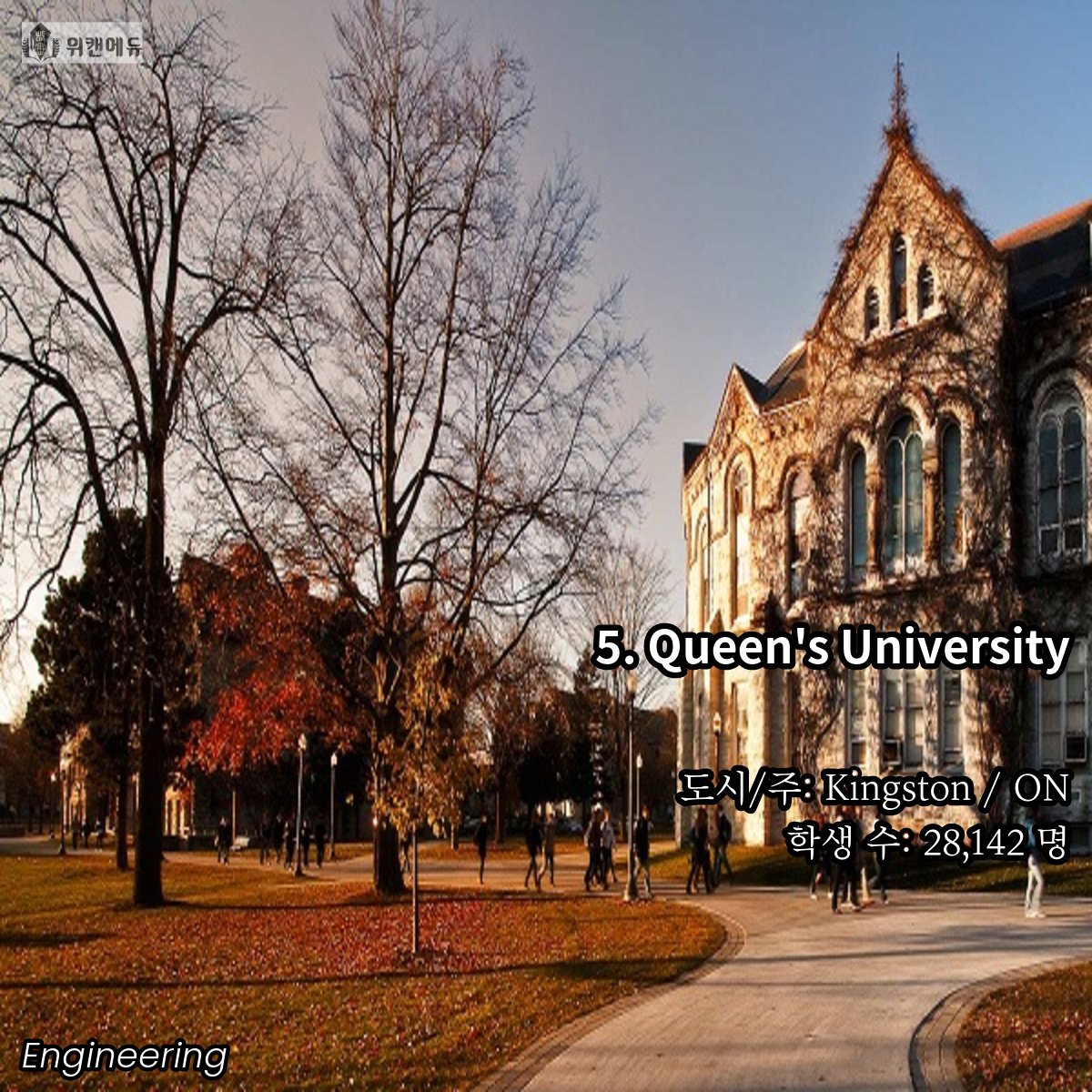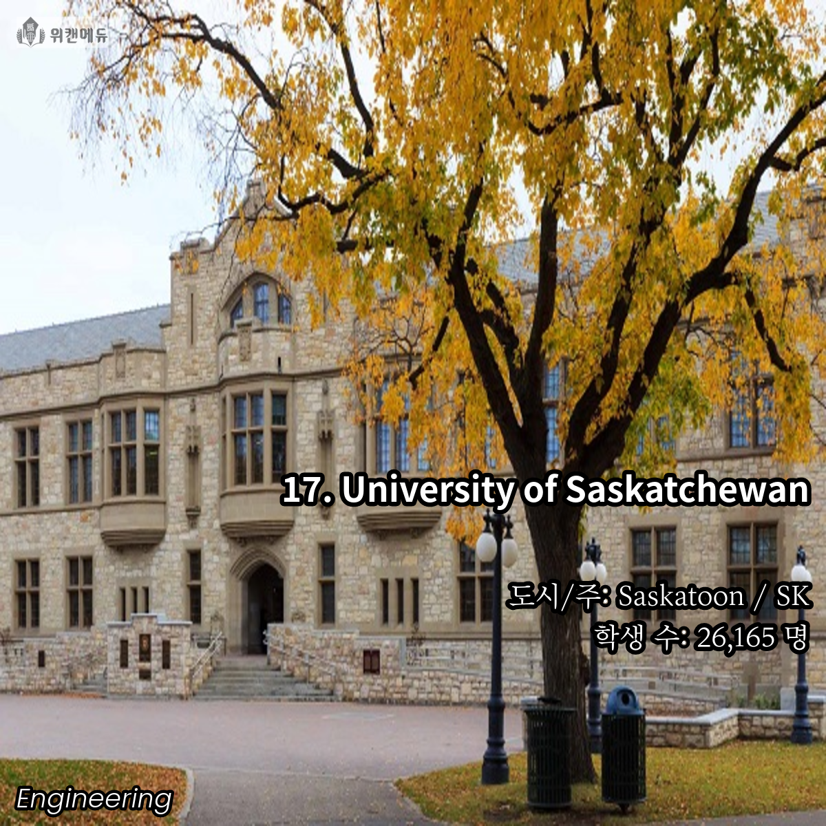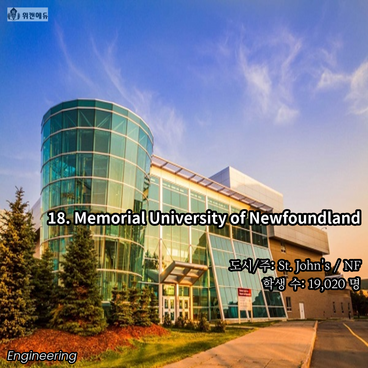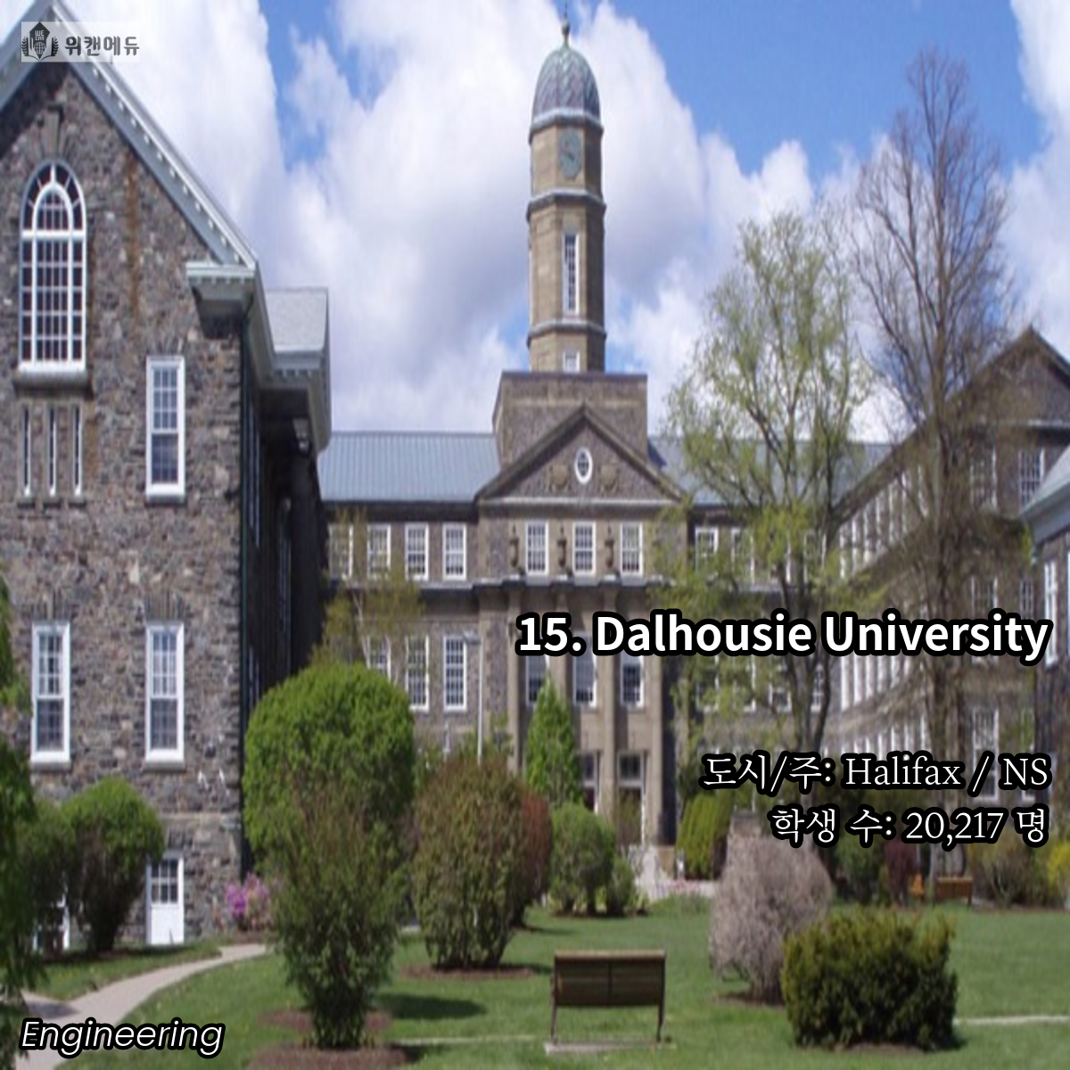 공학을 전공하고 싶은 학생들이라면 한 번 쯤은 꿈꿔보고 도전해볼 만한 곳이 바로 캐나다의 대학교 입니다. 세계 유수의 유명 대학들과 어깨를 나란히 하고, 필드 전반 곳곳에서 활약하는 인적 네트워크 등의 Background 역시 큰 자산이라고 할 수 있겠습니다.