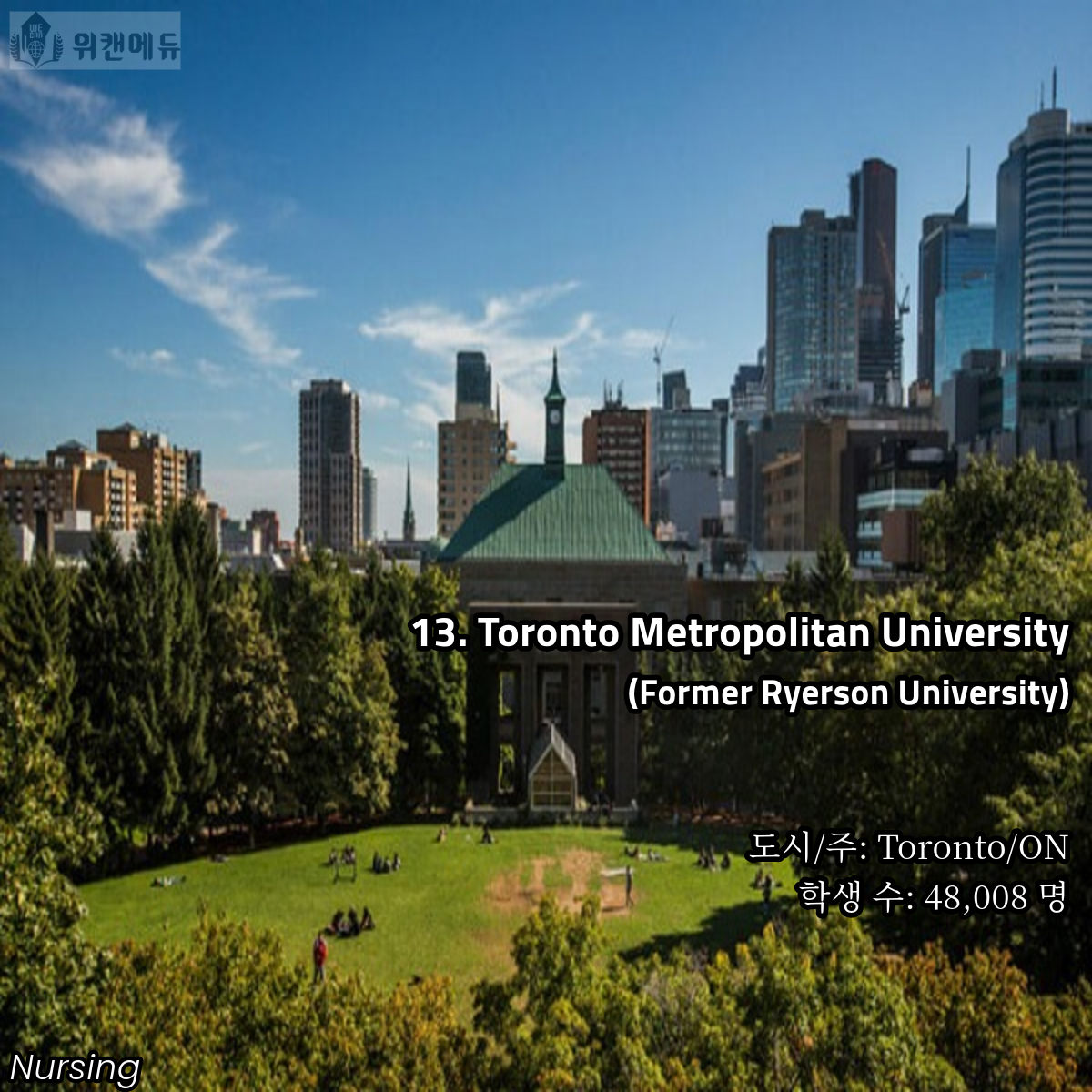 13. 토론토 메트로폴리탄 대학교 (Toronto Metropolitan University)