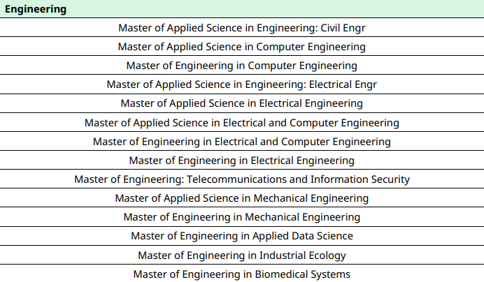 이렇게 정해진 석사 과정 프로그램만 가능합니다.
