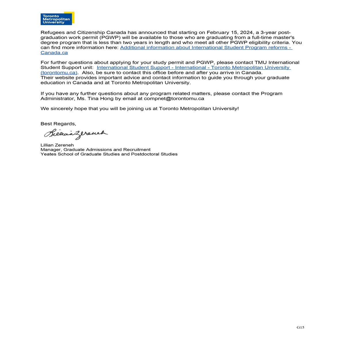 대학원은 PAL 레터가 필요하지 않으므로,