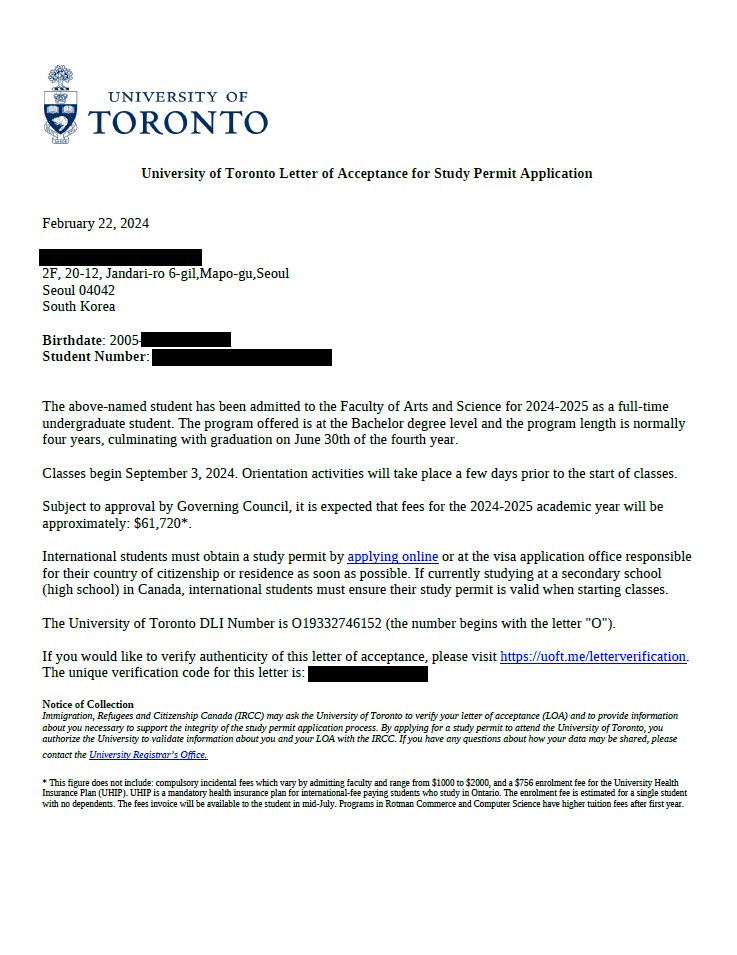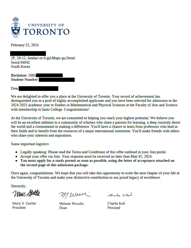 [2024년 합격] 11. 캐나다 토론토 대학교 (University of Toronto) - 수학과 (Mathematics - Math & Physical Science) 학부 합격
