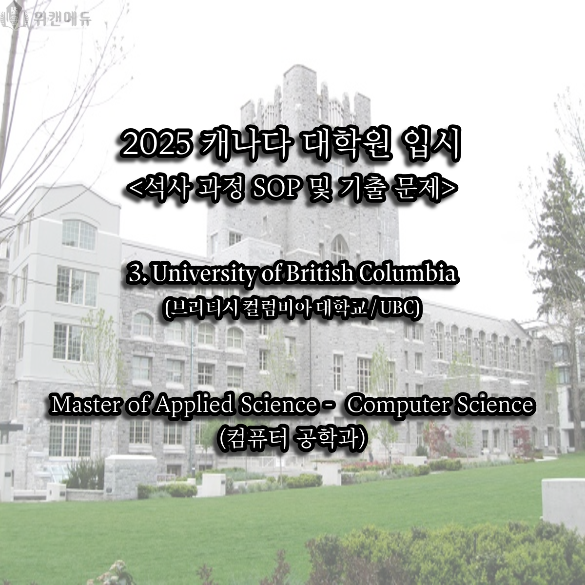 캐나다 명문대학 UBC 대학원 입시 절차를