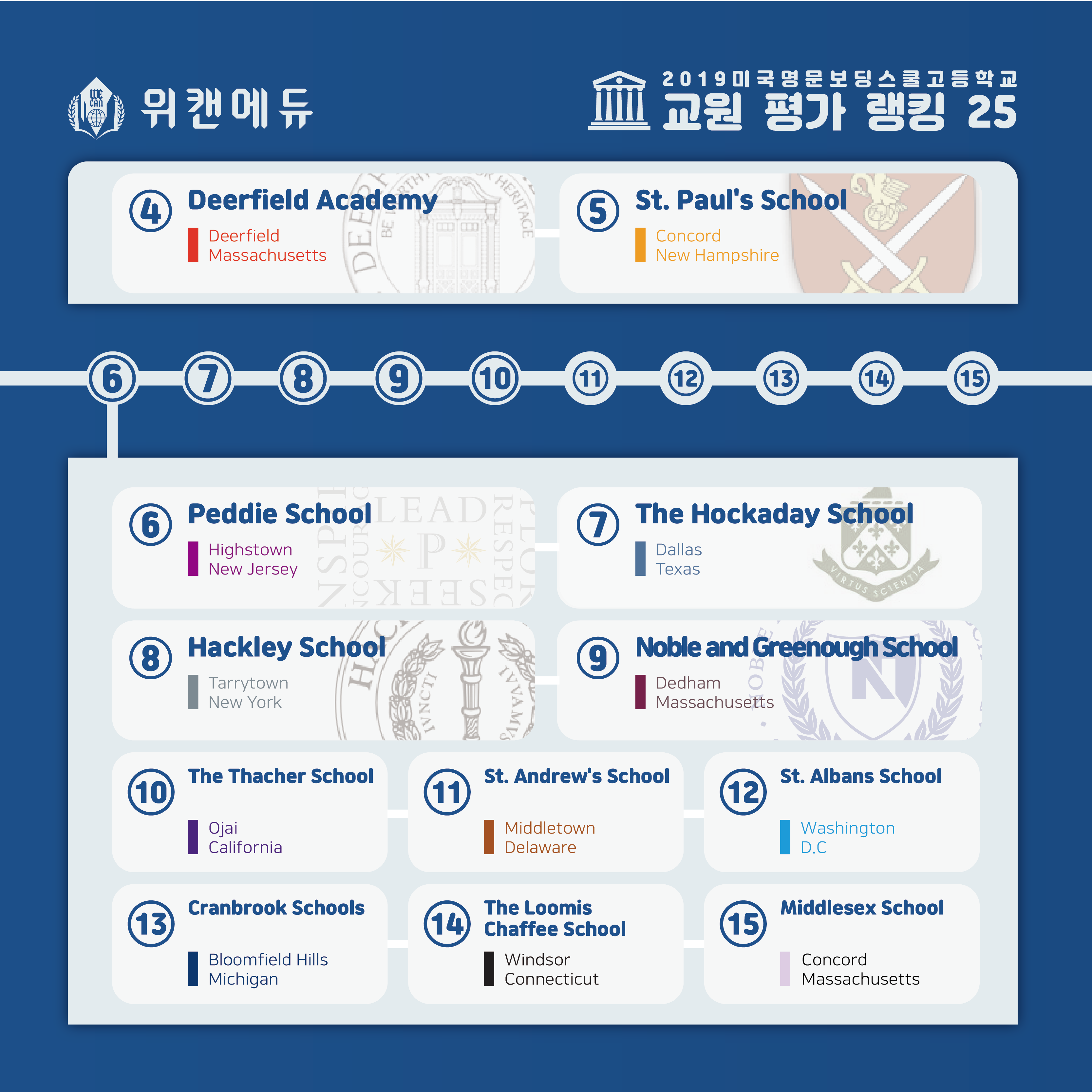 | [미국학교순위] 2019년 미국 명문 사립 보딩스쿨 - 고등학교 TOP 25 (0) | 2019.04.12 |