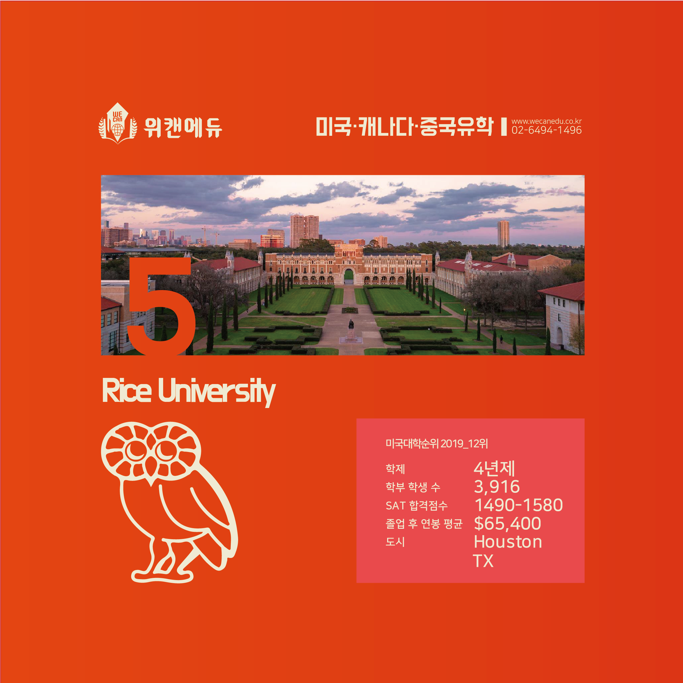 5위: Rice University