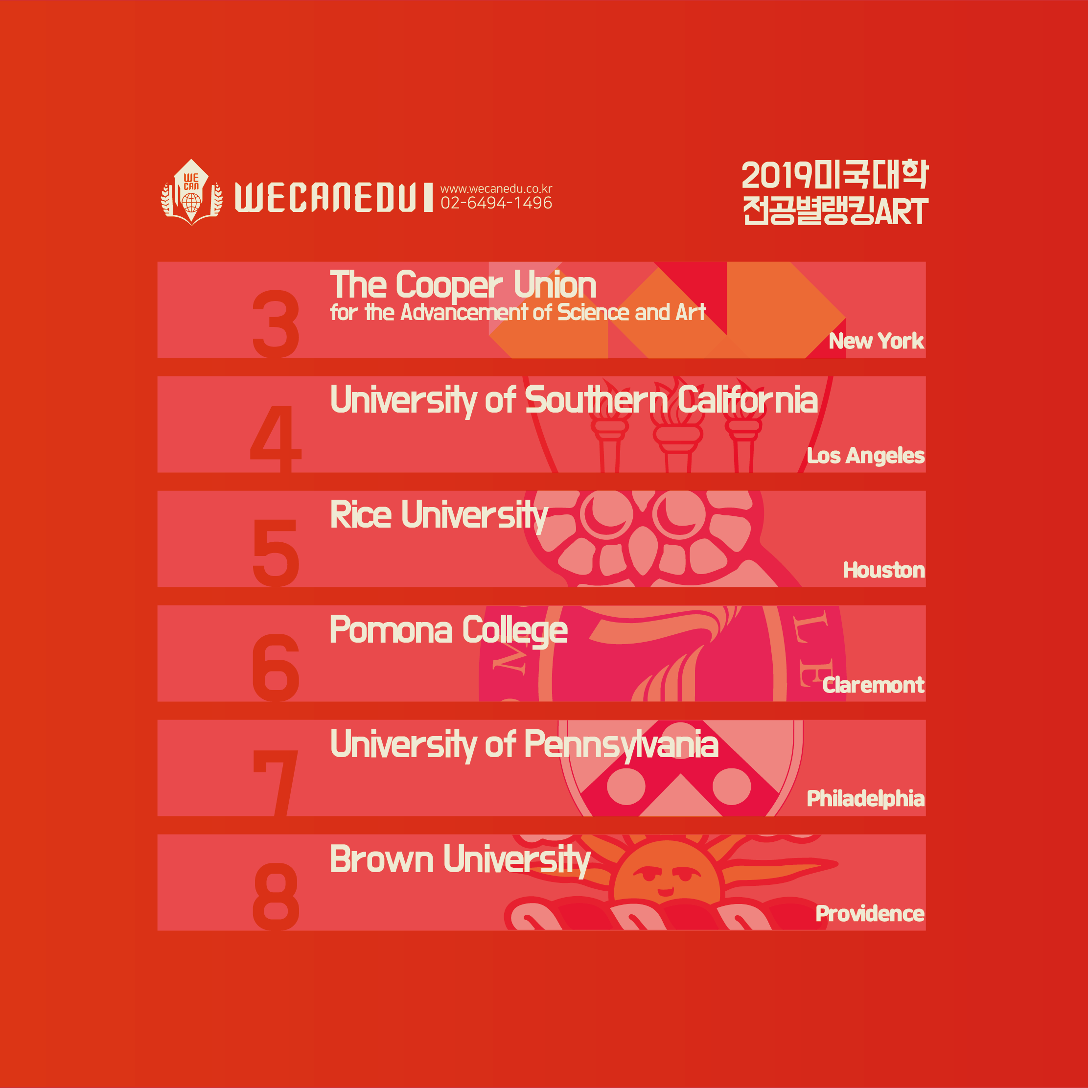 <2019 미국 미술대학 랭킹 TOP 15>